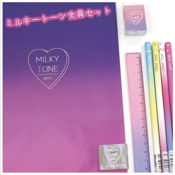 文具セット ミルキートーン 下敷き 定規 鉛筆 消しゴム 2b Hb 小学生 中学生 女の子 子供 かわいい 可愛い 文房具 筆記具 Dejapan Bid And Buy Japan With 0 Commission